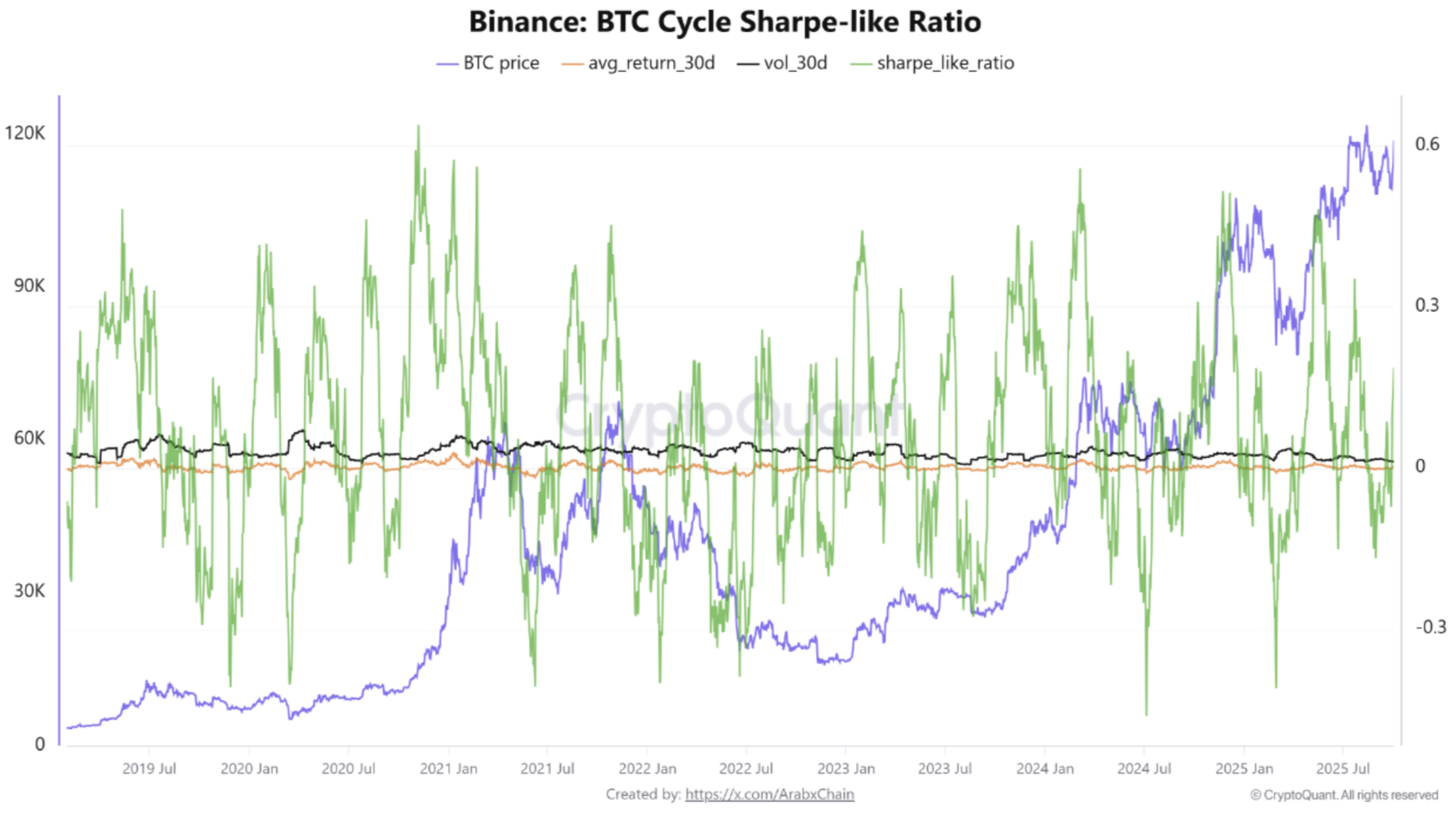 As Bitcoin (BTC) steadily makes its way toward its current all-time high (ATH) of $124,128, optimism seems to be returning to the market. However, fresh data from Binance shows that BTC’s gains barely outweigh the risks posed by the digital asset’s volatility.