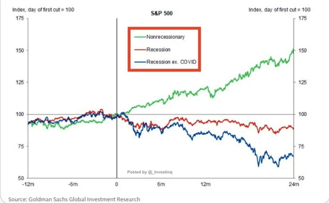 As she states and taking in count Goldman Sachs Global Investment Research data, when the Federal Reserve cuts interest rates, many investors instinctively assume that it is bullish for the stock and crypto market (me included when I forget about this). But reality is different, it is important in what context it happens and usually the context matters more than the cut itself.