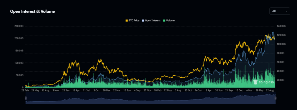A close watch on how the market behaves around $123,500 will be important. A decisive break with growing volume and rising open interest would likely accelerate the climb toward $131,000 and beyond. If the level holds as resistance, expect a sharper correction that could test lower support inside the channel.
