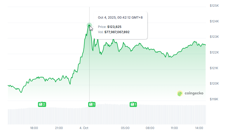 According to market reports, Bitcoin pushed up against a key ceiling this week as more money flowed into futures and spot markets. Price action has held above several support levels, and traders are watching $123,500 as the immediate test before a fresh run at records.