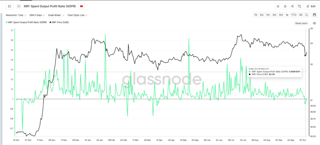 Market watchers say a fall in SOPR can mark capitulation and sometimes precedes a recovery if buyers step in. During the sell-off, XRP slid nearly 44% from $2.8 to roughly $1.58, according to trading data, but it has since climbed back toward the $2.5 region as sellers have been absorbed.