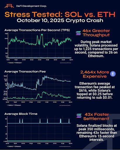 In an X post, the Nasdaq-listed go-to Solana Digital Asset Treasury (DAT), DefDevCorp, has revealed that when the largest liquidation event in crypto history hit last Friday, most of the market froze, and Ethereum stumbled. However, Solana didn’t flinch, powering through one of the most chaotic trading sessions ever recorded.