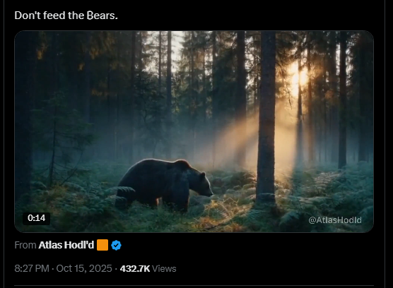 According to a short cinematic video titled “Don’t Feed The [Bitcoin] Bears,” Saylor used a playful metaphor — “Ursus Bitcoinius, the Bitcoin Bear” — to urge holders not to reward bearish chatter.