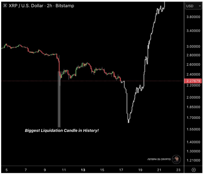 In XRP’s case, that intense pressure led to a violent plunge that created a deep low wick to break below $1.6 on its price chart before a quick rebound above $2.2. That wick is central to the argument that the forced selling squeezed both longs and shorts, clearing excess leverage and setting the stage for price discovery to reset. However, a suggestion is that the worst may not yet be fully priced in, and that this purge might continue deeper before sentiment truly turns bullish.