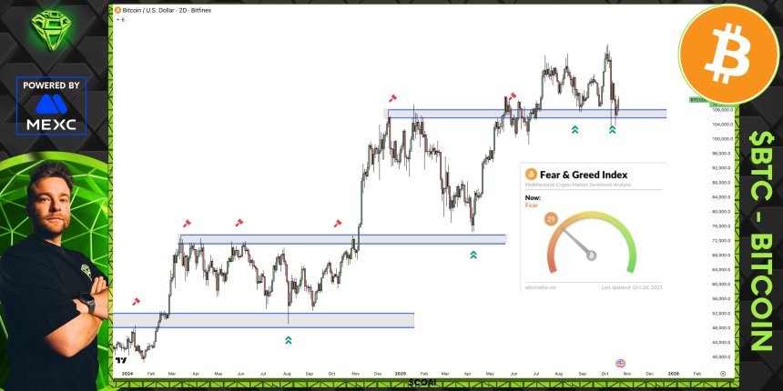 Similarly, Sjuul from AltCryptoGems highlighted that despite the current market sentiment, which shows the Fear and Greed index remains at fear levels, the flagship crypto is “still perfectly holding that flipped resistance level,” around $108,000, and is holding it as support.