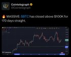 BTC has closed above $100K for 170 days straight