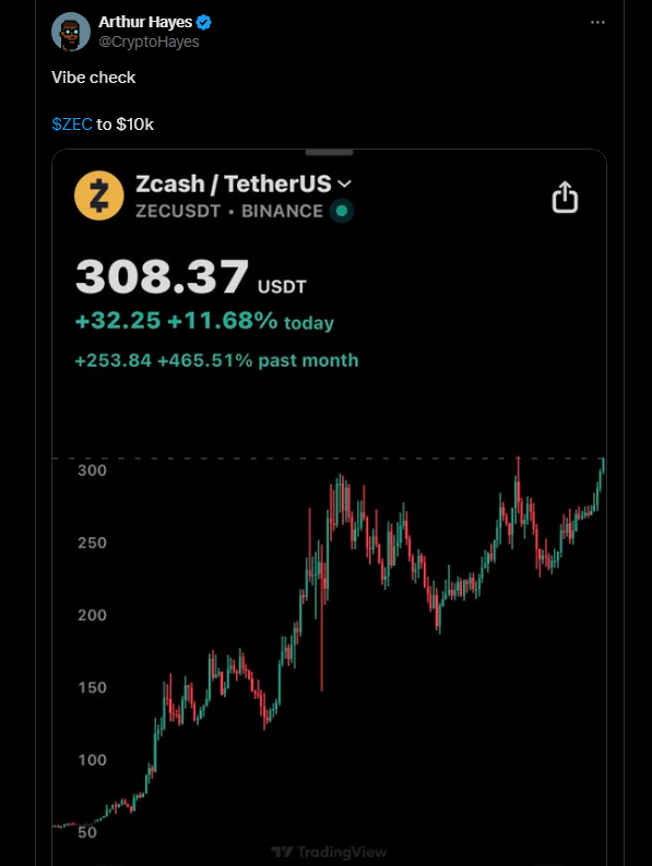$10K Is Coming: Arthur Hayes’ Zcash ‘Vibe Check’ Sparks 30% Moonshot
