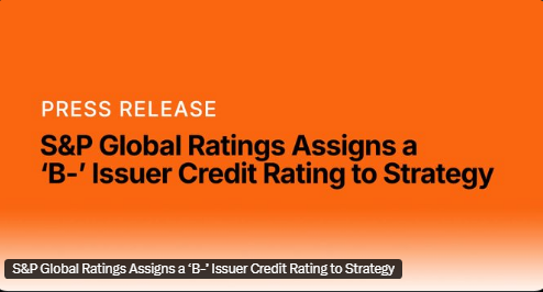 S&P Global Ratings has assigned Strategy Inc a ‘B-‘ Issuer Credit Rating (Outlook Stable) — the first-ever rating of a Bitcoin Treasury Company by a major credit rating agency. https://t.co/WLMkFqkkCb