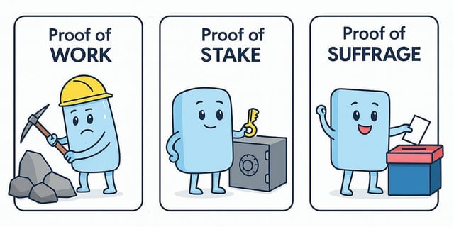 This is Ethereum related in the same way any content around "Network-State" is Ethereum related. For proof-of-suffrage, Gavin Wood has been working on that now for a few years, the idea will gradually become more and more popular as people start to notice it exists. I built a proof-of-suffrage consensus engine on Ethereum last spring, but it was built on the pre-proof-of-stake Ethereum so it is not perfectly suited for what it does (the order of steps in proof-of-suffrage/stake is opposite to in proof-of-work). But overall, this is relevant discussion I would say, just like the pre-proof-of-stake Ethereum had pluggable consensus and deliberately opened up for a variety of ideas around consensus, of which I think "one person, one unit of stake" will be the logical conclusion. In this post I also advertise what developed from the original "virtual pseudonym parties" that many here may have noticed back in 2015. submitted by /u/johanngr |