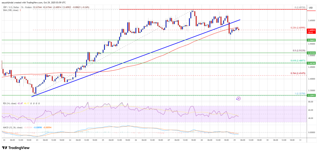 Besides, there was a break below a bullish trend line with support at $2.6350 on the hourly chart of the XRP/USD pair. The price is now trading below $2.60 and the 100-hourly Simple Moving Average.
