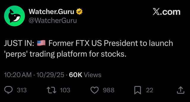 Criminal exchange FTX’s former US President launching a perp platform for stocks. How many red flags can a project have?
