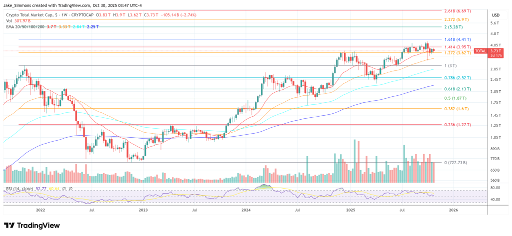 At press time, the total crypto market cap stood at $3.73 trillion.