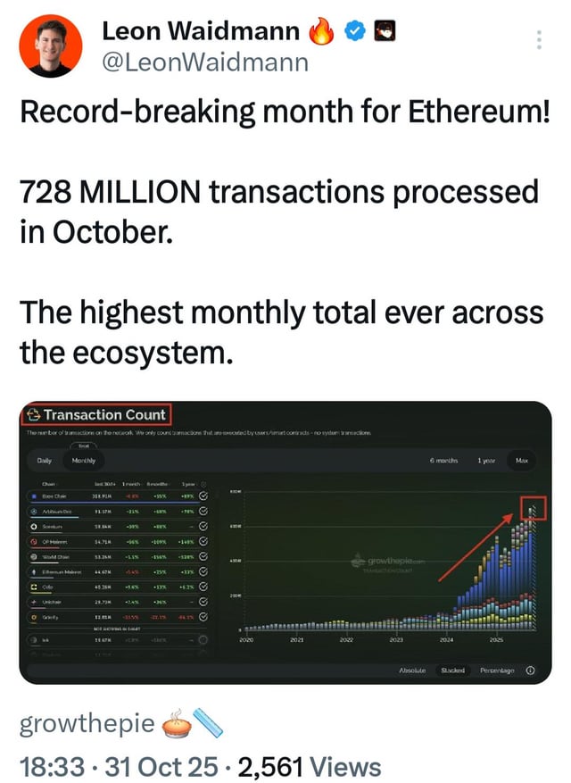 Ethereum just had a record-breaking month with 728M transactions processed in October.