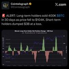 Long-term holders sold 400K BTC in 30 days as price fell to $104K. Short-term holders dumped $3B at a loss