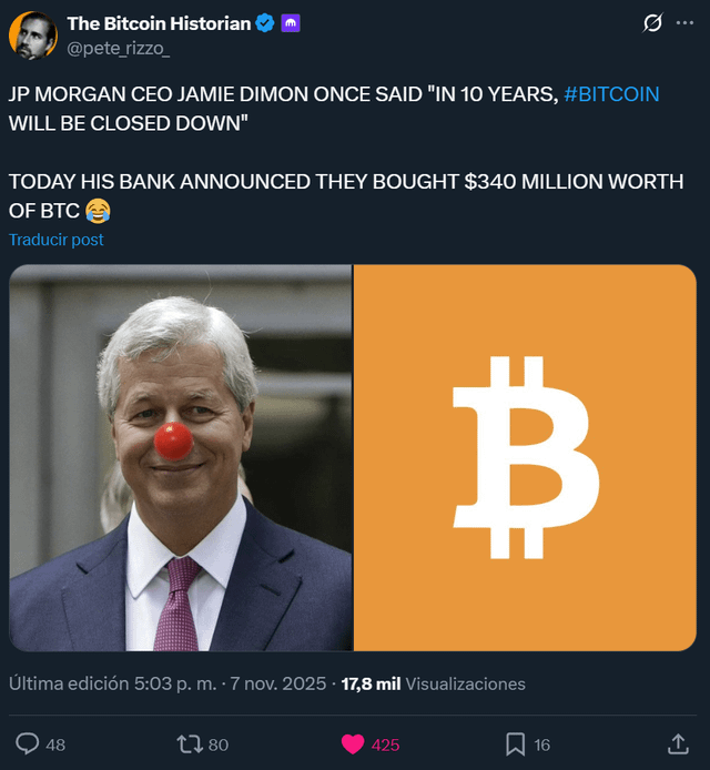 JP Morgan CEO Jamie Dimon Once Said “In 10 Years, Bitcoin Will Be Closed Down” – Today His Bank Announced They Bought $340 Million Worth of BTC