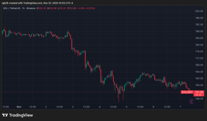 As of this writing, Solana is trading at $154, a 1% decline in the daily timeframe.