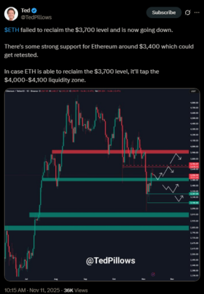 Analyst Ted’s X post discussing Ethereum’s $4.1K price target.