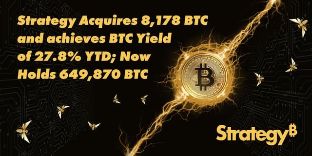 Strategy Acquires 8,178 BTC for $835.6 million and Now Holds 649,870 BTC