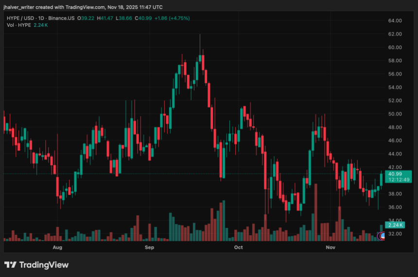 Despite the carnage, Hyperliquid price has surged by 6% in the past 24 hours, climbing back above $41 on Tuesday and extending the rebound that began after defending the critical $36.51 support level last week.