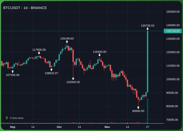 A definitely, very real, Bitcoin Chart that is super Real and Definitely not not fake. To show your family who told you not to throw your down payment money on Bitcoin at 118k.