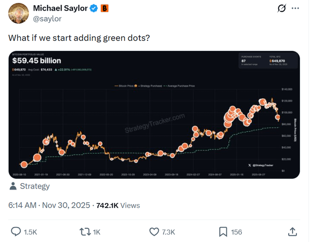 Hours after Strategy CEO outlines when they would sell BTC – Michael Saylor makes a cryptic tweet about green dots. If an Orange Dot is a buy is a Green Dot a sell?