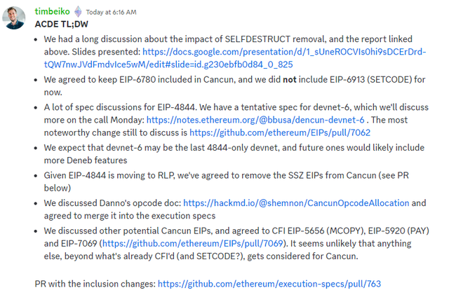 Summary of All Core Devs Execution (ACDE) call by Tim Beiko