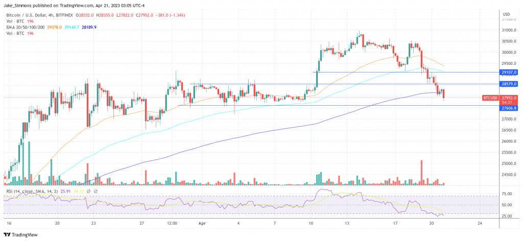 Bitcoin and the broader crypto market have taken harsh losses over the past two days. After the BTC price was still trading above the psychologically important $30,000 price mark on Tuesday, a sharp downward correction followed on Wednesday, dragging the entire crypto market down with it. And an even deeper correction cannot be ruled out. At press time, the BTC price dropped below $27,900, ETH traded slightly above $1,900. A big reason for the sell-off in the crypto market in recent days was the funding rates on leveraged long bets. A large number of traders had recently opened bullish bets on a sustained rise in Bitcoin and Ethereum, an easy play for market makers to liquidate these positions through major sell-offs. According to Coinglass, liquidations of leveraged positions exceeded $262.5 million across the crypto market yesterday (Thursday). This is the highest level so far this year and shows that the greed in the market was too high. According to @coinglass_com data, yesterday saw the largest long liquidation event this year. pic.twitter.com/hzgx4fDeVJ — tedtalksmacro (@tedtalksmacro) April 20, 2023 Every dip was bought by traders with leverage in anticipation of a bounce to the range high. This unhealthy market behavior needs to be flushed out of the market to create a sustainable price rise (as before) through spot buying. Bitcoin And Crypto Continue To Be In The Danger Zone Technical analyst and founder of Eight Global, Michaël van de Poppe, believes Bitcoin is not out of the danger zone yet because the price is currently exhibiting weakness: Bitcoin is currently showing weakness. Broke back in the range, lost one of the crucial levels. Final crucial level is at $27,600. Could take liquidity below, but needs a fast recovery. If not, and no break of $28,800, then I suspect we’ll see $26,200. From an on-chain perspective, the price level at $28,300 might be crucial as Bitcoin’s Realized Price – UTXO Age Bands (1 week to 1 month) is located here. As analyst Crazzyblockk writes via CryptoQuant, the level can be considered as a psychological level for people looking for short-term gains. Related Reading: Bitcoin In Danger Zone: Bulls Must Hold $27,700 For Price Recovery, Expert Suggests The reaction to this area could be instrumental in judging the strength or even weakness of the bulls. “If Bitcoin receives a reaction from the short-term at these levels, it will be a sign of renewed interest in holding and entry by these people, and if this level breaks, these players will continue to sell,” the analyst predicts. Traders should also keep an eye on the US dollar index (DXY), as US dollar strength will be a headwind for the crypto space. As we reported in previous market updates, the DXY could initially gain strength in the coming weeks before writing new lows – as Glassnode’s co-founders expect. Related Reading: Buy The Bitcoin And Crypto Dip Or Wait? Market Update While this does not change the overall bullish chart picture for Bitcoin and crypto this so far, soon key levels could come into focus. As renowned analyst Pentoshi stated today, the $25,000 area becomes crucial for a higher low on the larger time frames. $BTCThe first area for 23 was tagged. Said all year this would be the most interesting spot to sell. Did I? No! I think NEW lows are extremely UNlikely Two most probable outcomes #1 was range year. If so we can see sub 20k again Med Time the area to watch is 25k area for a HL https://t.co/7gQDUVVbcE pic.twitter.com/E45TZhqglR — Pentoshi 🐧 euroPeng 🇪🇺 (@Pentosh1) April 21, 2023 Moreover, things could become problematic for risk assets if the US dollar continues its rally in the coming weeks and months. Remarkably, according to Bloomberg, hedge funds are betting on a significant rise in the US dollar for the first time in over a year. At press time, the Bitcoin price was trading at $27,952, continuing the downward trend of the last two days. Featured image from iStock, chart from TradingView.com