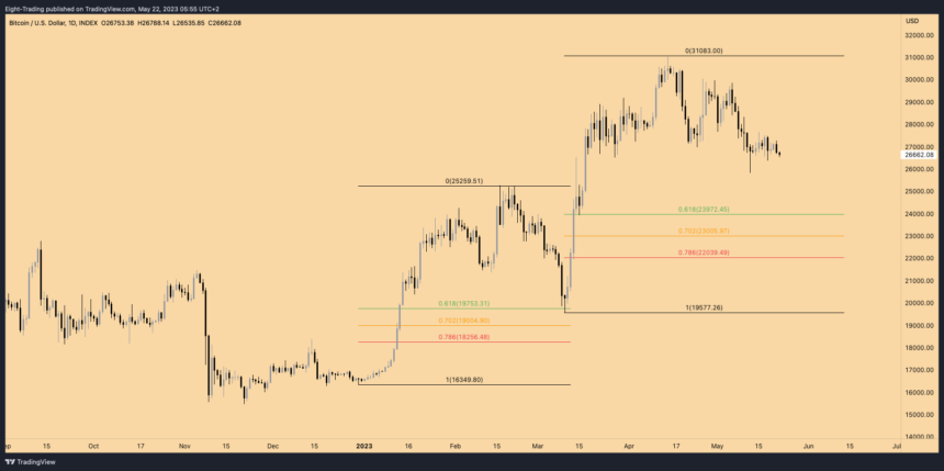 Mike McGlone, a senior commodity strategist at Bloomberg, has highlighted Bitcoin’s (BTC) historical patterns of boom and bust, which are closely tied to liquidity. According to McGlone, Bitcoin’s current price level of around $27,000 may be at risk of reversion, considering that it was only $7,000 at the end of 2019 before the massive liquidity pump in 2020. Related Reading: Solana (SOL) Records Surge In New Active Addresses, But Onchain Activity Takes A Dive Bitcoin Faces Unprecedented Risk? McGlone’s analysis also indicates that Bitcoin’s downward trajectory, as demonstrated by its 52-week moving average, contrasts with the upward trend it experienced at the onset of the pandemic. This suggests that the cryptocurrency is susceptible to booms when liquidity is abundant but vulnerable to busts when liquidity is removed. As such, McGlone recommends respecting the down-sloping 52-week mean in assessing Bitcoin’s direction bias. Despite the recent bank run, the Federal Reserve (Fed) has tightened twice, which may indicate the central bank’s tenacity, McGlone points out that slumping copper and cryptocurrencies, including Bitcoin, are paying heed to the warning, which contrasts notably with the resilient stock market. Furthermore, in a recent interview, McGlone warned that Bitcoin could potentially experience a significant decline and return to its 2019 rally starting point of around $7,000. McGlone cites the drying up of liquidity and rising interest rates as key factors that could lead to a mean reversion for Bitcoin. While acknowledging the potential for Bitcoin to rebound, McGlone notes that the cryptocurrency has yet to exhibit strong divergence from other assets and suggests that investors should wait for a significant drop in the S&P 500 and copper before considering a long position in Bitcoin. Looking at the facts of Bitcoin, McGlone notes that before the massive liquidity pump in 2020, the cryptocurrency’s average price in 2019 was around $7,000. It subsequently surged to $60,000 before settling at its current level of $27,000. While Bitcoin is still trading at four times its 2019 average price, McGlone cautions that the risk of mean reversion remains and suggests that investors should exercise caution in the current market environment. BTC’s ABC Pattern Could Signal Consolidation And Potential For Upside Crypto analyst Michael Van de Poppe has assessed Bitcoin’s recent price action and suggests that the ABC pattern could technically be complete for BTC. The C wave went lower than the initial A wave, and they are approximately the same length from a price drop perspective. The lowest wick was only $500 off the base case, and the price seems to have entered consolidation just as expected, albeit higher. Van de Poppe notes that C waves having approximately the same length as the A wave is uncommon, and sometimes the C wave can go much deeper than the A wave. However, at this point, it is worth considering that the bottom of the C wave may be in. If another drop is lower, it should happen in the first half of this week. If the price breaks above $27,700 or even flips the descending trendline, that could be early signs that consolidation is ending, and Bitcoin’s price is ready for continuation upwards. The ultimate level to flip for higher conviction is $29,000, and RSI is above 50. Related Reading: How Does Current Bitcoin Rally Compare With Historical Ones? On the other hand, if there is a daily candle close below $16,700, another leg down becomes more likely, and Van de Poppe’s target for that would still be $24,000 – $25,3000. Van de Poppe emphasizes that both scenarios are bullish over the medium timeframe (months) as long as Bitcoin’s price does not drop and stays under $22,000 in a sustained manner. Featured image from iStock, chart from TradingView.com