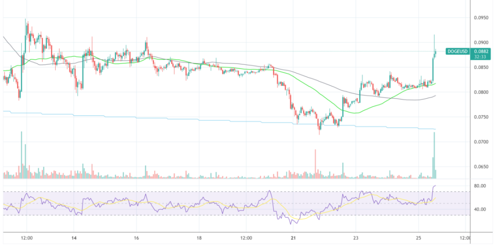 Crypto influencer David Gokhshtein has told his nearly 700,00 followers on Twitter that he expects Ethereum co-founder Vitalik Buterin and and Elon Musk to join forces to upgrade Dogecoin. The Dogecoin price, possibly triggered by Gokhshtein’s speculation, saw a massive spike of more than 12% at one point in the aftermath. The price shot up from $0.0823 to as high as $0.0913 on Binance. At press time, however, DOGE was already experiencing a slight correction of the swing and was trading at $0.0882. “I feel that we’ll all seen Vitalik and Elon working together to somehow upgrade DOGE”, Gokhshtein tweeted and added that “they won’t work on Bitcoin — well because Vitalik tried that in the past and was kicked and Elon is interested in turning something that started off as a joke into something serious.” However, it is important to remark that neither Musk nor Buterin have commented on Gokhshtein tweet. Related Reading: Bitcoin Price Faces Rejection, Why BTC Could Resume Its Downtrend The crypto-influencer is making a pure speculation, presumably based on previous statements made by both individuals. Musk is known to be one of the biggest, if not the biggest Dogecoin (DOGE) supporter. His tweets have caused massive swings in the DOGE price in the past. Last but not least, there are rumors and hints – which Musk has never fully dispelled – that Musk himself is the biggest holder of Dogecoin (DOGE). Deep Dogecoin Ties Between Buterin And Musk Vitalik Buterin, for his part, has already spoken out several times on the subject of a DOGE upgrade from proof of work to proof of stake. According to Buterin, Dogecoin has been in consideration for a move to proof-of-stake for some time. Buterin shared this assessment at Mainnet 2022, a crypto conference held Sept. 21-23 in New York. Back in August 2021, the Dogecoin Foundation announced its re-launch. First established in 2014, the foundation has since been able to count on the support of the Ethereum mastermind. Related Reading: Litecoin (LTC) Must Maintain $77 Level To Sustain Enthusiasm Come December Buterin joined the board of the newly established Dogecoin Foundation as one of its four-member advisory team. A representative of Elon Musk is also on board. This is not necessarily surprising given the Tesla CEO’s previous activities regarding Dogecoin. Not least, Musk had called for a drastic reduction in transaction fees on the Dogecoin network, among other things. Moreover, Buterin has donated large amounts of DOGE to the Dogecoin Foundation several times in the past, the last time in November 2021. A year ago, he donated 20 million DOGE. So, even though Gokhshtein’s statement is pure speculation, there are indeed some connections between the two personalities that make a joint effort not seem impossible.