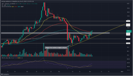 Axie Infinity (AXS), a cryptocurrency with an overall valuation of $964.02 million, is in the midst of a bullish run that enabled it to tally an impressive 22% jump in the last 24 hours. At the time of writing, according to tracking from Coingecko, the digital asset is changing hands at $8.79 and has managed to increase its value by more than 33% within the previous seven days. Here’s a quick glance: AXS has gone up by almost 40% within the last two weeks Axie Infinity nears the $9 marker Token is poised for a surge of more than 30% to reclaim the $10 territory With its current momentum, the crypto has also surged by 39.2% over the last two weeks and has trimmed its monthly loss to just 16.3%. After being in a steady downfall for six months, Axie Infinity finally found some relief and is poised to make further push to breach the psychological $10 marker. Technical Indicators Suggest Axie Buyers In Control Among the various analysis points for the crypto asset, its Relative Strength Index is the most promising one as it shows a significant increase in buying momentum – a situation that usually heralds bullish growth. Related Reading: Quant Shows Potential For Surge Beyond $150 – Can QNT Hit Its Target? Source: TradingView In addition, the AXS 20 and 50-day Exponential Moving Average (EMA) confirms the thesis for a potential continued surge given the altcoin’s volatility remains at “medium.” With the current price action, it is most likely that traders will be interested in the asset’s attempt to retest the breached resistance during the next trading sessions which might trigger an increase of as high as 35.8%. If that happens, Axie Infinity will change hands at $11.8, the lower zone of the set point of resistance for the crypto (the highest of which is $15.4). However, in the event that the earlier mentioned scenarios don’t unfold, the cryptocurrency might have to revisit its supports levels standing at between $8.3 and $7.5. Rising NFT Sales Volume Fuels AXS Rally Cryptoslamp, an NFT industry data aggregator recently shared some information regarding the positive development of the digital asset class’s sales volume going up by almost 10% within the last 24 hours. During the same time, NFT-focused virtual coins such as ApeCoin (APE), Sandbox (SAND) and Flow (FLOW) witnessed a major uptick in their respective prices. In addition, it would appear that Axie Infinity has also benefited from a social media post indicating that more than 600 members of the AXS community has gathered to share ideas on how to help shape a good future for the project. Related Reading: Why Chiliz Is Losing Heat Despite World Cup Pomp; CHZ Down Over 30% AXS total market cap at $854 million on the daily chart | Featured image: Skip Prichard, Chart: TradingView.com
