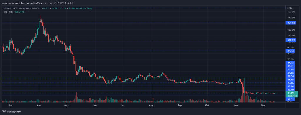 The Solana price is up by 6% over the last 24 hours. As the broader market secures upward price movement, most altcoins have followed suit. The release of the Consumer Price Index (CPI), which is an important measure of inflation, showed that U.S. inflation had slowed to 7.1%, down from 7.7% in the past month, as depicted by the numbers released by the U.S. Bureau of Labor Statistics. The data has revealed that consumer inflation has fallen, pushing stock futures to rise. Owing to this report, the crypto market has also shown signs of recovery. Solana, for instance, had been consolidating for the past few weeks; at press time, however, it has been eyeing a breakout on the upside. The technical outlook for the coin has begun to favor the bulls, indicating accumulation on the chart. As demand for the altcoin is making a recovery, buyers have started to show interest in the chart. Over the last week, the coin lost 1.6%, and the daily gains have managed to undo most of the coin’s loss. The market capitalization of Solana has also noted an increase, denoting bullish power in the market. It is, however, important for SOL to cross a couple of price barriers in order to continue its upward price trajectory. Related Reading: Bitcoin Long-Term Holder Supply Reclaims ATH, Return Of Conviction? Solana Price Analysis: One-Day Chart SOL was changing hands at $13.80 at the time of writing. The coin has been making intra-day gains after the U.S. CPI data release. The overhead resistance for Solana now awaits at $15, breaching which the coin could move over the $20 mark. Although buying strength needs to remain consistent in the market, a price pullback scenario is unlikely but not impossible, in which SOL would slip to $12 and then to $10. The amount of Solana traded in the last session demonstrated bullish strength, indicating increased buyers on the chart. Technical Analysis The price of the asset has depicted congestion for several weeks now. It has been trading along a descending trendline, but Solana price awaits a breakout now. If that happens, SOL will rise above the $23 price zone. This would mean a 64% price appreciation for the coin. The Relative Strength Index shot past the 40-mark and inched closer to the half-line, which depicted a considerable rise in buying strength. The indicator even formed a bullish divergence which usually reflects a rise in buying strength. In regards to the increase in accumulation, SOL moved above the 20-Simple Moving Average line, meaning that buyers were driving the price momentum in the market. Solana depicted buy signal on the one-day chart | Source: SOLUSD on TradingView In correspondence with more buyers, SOL logged buy signals on the chart. The Moving Average Convergence Divergence (MACD), which measures price momentum, underwent a bullish crossover. This is good news for buyers, as it acts as an entry point for them to secure gains. Related Reading: Bitcoin Price Breaks Above $18,200 – CPI Data Comes In Better Than Expected The Directional Movement Index (DMI) was yet to reflect positive price action as the -DI (orange) line was above the +DI (blue) line. The Average Directional Index (red) was just below 40, marking strength in the bullish price movement.