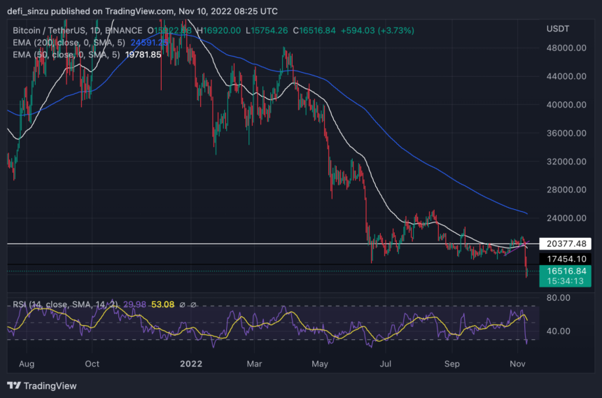 Amidst the drama surrounding the busted deal between FTX and Binance, banking giant JP Morgan has commented on the current state of Bitcoin and the broader crypto market. If FTX does file for bankruptcy, the contagion could be massive. As Bitcoinist reported today, FTX CEO Sam Bankman-Fried confirmed in a call with his investors shortly before Binance dismissed his bailout that the hole in the balance sheet is $8 billion. Related Reading: Bitcoin Price Plunges 15%, Can Buyers Save The Key $15K Support? An anonymous source leaked that the troubled exchange is seeking bailout funding in the form of debt, equity or a combination of both. With Singaporean state-owned Temasak and TRON founder Justin Sun, there are currently at least two small sparks of hope. JP Morgan Forecasts Gloomy Times For Bitcoin The looming insolvency of FTX continues to weigh heavily on the Bitcoin price at the moment. At press time, Bitcoin was trading at $17,767, down 9% over the last 24 hours and down 19% over the last seven days. Exactly one year ago, on November 10, 2021, BTC reached its previous all-time high of $69,045.00, which represents a price drop of around 75% at the current rate. However, according to the latest report from JP Morgan, it could go even lower as the market faces a “cascade of margin calls.” According to JPMorgan strategists led by Nikolaos Panigirtzoglou, the Bitcoin price could fall as low as $13,000. Moreover, the analysts warn in the report that the cascade effect could be amplified due to the current conditions of the market: What makes this new phase of crypto deleveraging induced by the apparent collapse of Alameda Research and FTX more problematic is that the number of entities with stronger balance sheets able to rescue those with low capital and high leverage is shrinking” in the crypto sphere. According to JP Morgan, a renewed miner capitulation deems a major risk factor. In particular, the U.S. banking giant believes Bitcoin could fall below its production cost, currently averaging around $15,000. At the moment, this production cost stands at $15,000, but it is likely to revisit the $13,000 low seen over the summer months. As a result, more miners like Core Scientific recently may be forced to sell their Bitcoin holdings, putting additional selling pressure on the market. Riot Blockchain, one of the largest publicly traded Bitcoin miners, recently released its latest quarterly report, revealing the state of its finances and operations. Related Reading: Bitcoin Bear Markets Compared: How Much Longer Till The Bottom? | BTCUSD November 9, 2022 As Jaran Mellerud of Hashrate Index discussed, nothing is more important in a bear market than a healthy balance sheet. Riot has a solid balance sheet with minimal debt, which is reflected in their low debt-to-equity ratio. The majority of the top 10 listed Bitcoin miners boast similarly good or even better numbers. Nothing is more important in a bear market than having a healthy balance sheet. Riot has a solid balance sheet with minimal amounts of debt. pic.twitter.com/viWEVUErbP — Jaran Mellerud (@JMellerud) November 9, 2022 However, with Hive, Spere 3D, DMG and CryptoStar, there are also four miners that have higher debt-to-equity ratios.