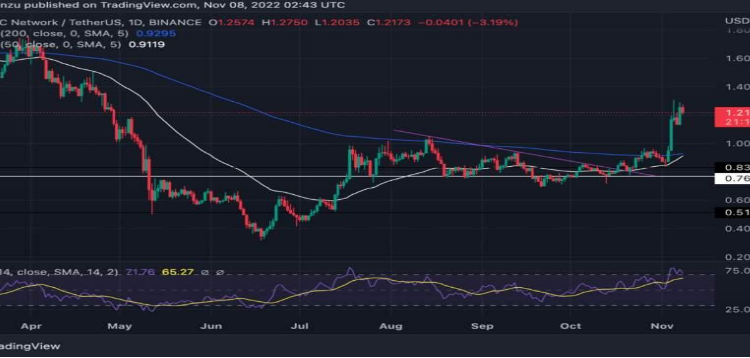 Polygon (MATIC) surpassed expectations with regards to its trading price as it ended up being the top gainer in a seven-day period right now among the top 15 cryptocurrencies in terms of market capitalization. Trading at $1.11 according to latest tracking from Coingecko at press time, the altcoin managed to climb by 26% for the past week. Its biweekly and monthly performances are also impressive, increasing by 23% and 35%, respectively. Here’s a quick glance at how MATIC is ushering the new month. Polygon continues to hold the crucial $1 territory to preserve hopes of another bullish run A decline below $1 could mean a revisit to $0.8 support region for MATIC The altcoin is up by 26% over the last seven days, surpassing Bitcoin and Ethereum in this department Those numbers could have been higher if MATIC was able to sustain its surge today that allowed it to peak at $1.28. It has declined by 8.6% since then. Now, the crypto’s focus must be on maintaining the $1 marker as doing so will boost its chances of hitting higher prices such as the coveted $1.5 region. Related Reading: Ethereum Loses $1,500 Grip As ETH Heads Down To Correction Phase Polygon Shrugs Off Shaky Start For Crypto Space This Week Altcoins had a remarkable run last week with many of them tallying significant price pumps. Ethereum was able to surpass the $1,600 marker and the maiden crypto, Bitcoin, was able to reclaim the $21K territory. However, the crypto space if off to a rocky and shaky start this week as its frontrunners started to enter their respective price correction phases. Bitcoin, for instance, is trading at $19,701 at the time of writing while Ethereum fell below the $1,500 marker to change hands at $1,475. Polygon, on the other hand, remains steady for now as it is still above the $1 marker. This is crucial as this could mean the crypto is priming itself for another bullish breakout soon. If MATIC is successful on this end, it could hit the $1.5 resistance region and even test the $2 territory. Should that happen, the altcoin will be within striking distance of its all-time high (ATH) of $2.92 which it achieved in December last year. However, if the cryptocurrency crumbles and fall below $1, its most likely destination is the $0.8 support level. Source: TradingView Partnership With Large Businesses Paying Off For Polygon Perhaps one of the reasons why MATIC is able to turn back the creeping bearish momentum that is looking to take over the crypto marker once again is its network’s efforts to partner with well-established companies. Just last week, on Thursday, the Polygon chain announced its partnership with Meta-owned Instagram, giving its users the ability to mint and eventually sell non-fungible tokens (NFTs) through the its platform. Moreover, on that same day, global financial institution JPMorgan Chase used the Polygon blockchain network to execute its first transaction in a decentralized finance (DeFi) environment. These positive stimuli continue to keep MATIC’s head above waters as the larger crypto market is once again sailing on a sea of red. MATIC market cap at $10.19 billion on the daily chart | Featured image from The Economic Times, Chart: TradingView.com