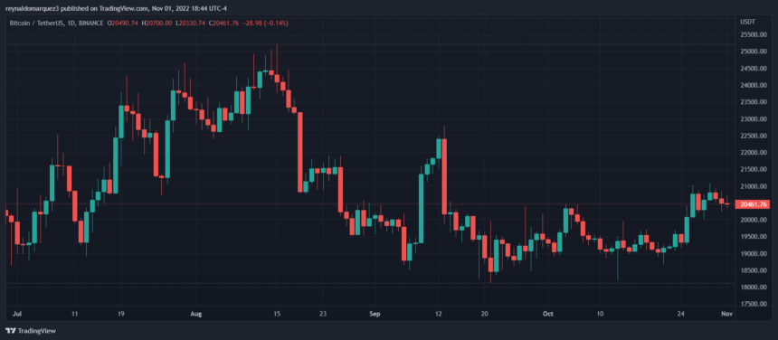 The Bitcoin price is holding on at its current levels with bullish momentum fading on lower timeframes. The crypto market’s recent sideways price actions seem related to the upcoming macroeconomic events and their potential influence across global markets. Related Reading: Bitcoin Mining Giant Argo Blockchain Gets Negative Cash Flows And Stock Price Dips At the time of writing, the Bitcoin price trades at $20,500 with sideways movement in the last 24 hours and a 6% profit over the previous week. Other cryptocurrencies in the top 10 by market capitalization are displaying strength as BTC moves sideways, with Dogecoin (DOGE) leading, followed by Ethereum (ETH) and Solana (SOL). The Bitcoin Price In The Short Term, Risk Of Spike In Volatility The Bitcoin price is under heavy influence from macroeconomic forces. The U.S. Federal Reserve (Fed) is trying to mitigate inflation by tightening its monetary policy, hiking interest rates, and reducing global liquidity. Consequently, Bitcoin and risk-on assets have trended to the downside for 2022. In October, BTC showed a higher correlation with traditional assets due to increased economic uncertainty. Per a recent report by Arcane Research, this status quo is likely to continue. The research firm believes that the Bitcoin price mid-term will still suffer from a high correlation to macroeconomic forces. Fed Chairman Jerome Powell is facing enormous pressure to pivot its monetary policy from internal and external agents in the United States. If Powell gives in, the Bitcoin price will likely benefit and extend its bullish momentum. However, Arcane Research believes it is more probable that Powell stays in its current course, preparing markets for further interest rate hikes. The financial institution and its leadership want to lower inflation in the U.S. dollar regardless of the fallout in global markets. During tomorrow’s Federal Open Market Committee (FOMC) meeting, Powell might offer more clues. The market expects further hikes, but any sign of dovishness could trigger another upside move. Bitcoin Market Susceptible To Squeezes In that sense, Arcane Research records two factors that might contribute to a possible uptrend. The first is high leverage across the crypto market. Short positions continue to pile up as the Bitcoin price trends to the upside. These positions are fuel for BTC if the market takes the long route. In addition, tomorrow’s FOMC meeting will likely trigger volatility which might lead Bitcoin to squeeze out these short positions and reclaim previously lost territory. As Arcane Research noted, volatility during these events is historically high. Related Reading: How MoneyGram Will Let Users Trade Bitcoin And Crypto However, the same is true for the short side of this trade. If the market overreacts to further tightening, expecting the Fed to come out dovish, the cryptocurrency could suffer and revisit the bottom of its range at $18,600. Arcane Research noted: Prepare for shaky markets in early November, as the event calendar is enormously busy in the first half of the month. Tomorrow comes the first.