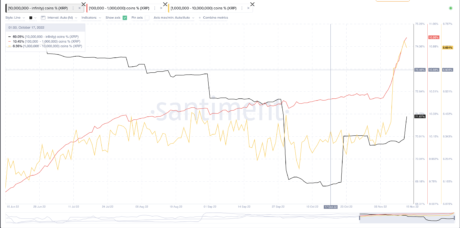 XRP whales have taken advantage of the price decline recorded in the crypto market to fill up their bags. These large investors have been rapidly buying up the tokens and increasing the percentage of supply they hold. In the last month, the holdings of these large whales have seen a significant uptick, sending their cumulative total holdings to one of the highest it has ever been. Gobbling Up The Coins Data from Santiment shows that the holdings of XRP whales with 100,000 to 10 million coins on their balances have jumped more than 6% in the last five weeks. These whales had held around 11% of the total XRP supply in mid-November following the crash of the FTX crypto exchange. But since then, they have increased their holdings by millions. Related Reading: What Ethereum’s Rejection At $1,350 Says About The Cryptocurrency Presently, the total percentage of supply held by these large whales is hovering around 18%. The chart below shows a clear uptrend in the last month where the holdings of these whales have increased, especially those holding between 1 million to 10 million coins. Whale holdings up in five weeks | Source: Santiment The same trend is also seen among wallets holding above 10 million coins. These wallets now hold a larger majority of the total supply at 71.67%, up from the 70.8% recorded in mid-November. So in total, addresses holding 100,000 coins and above now command around 90% of the total XRP supply. Will XRP Rally From Here? XRP’s price is currently moving in tandem with the crypto market which is still feeling the effects of Wednesday’s FOMC announcement. However, this clear accumulation trend among XRP whales could hint at a possible decoupling of the digital asset’s price from the broader crypto market, leading to a rally. XRP recovers above $0.38 | Source: XRPUSD on TradingView.com With prices so low, a lot of investors are not looking to sell their coins, but rather are investing for the long term. If the available supply continues to go to investors who are long-term holders, then such demand could result in a supply squeeze. Related Reading: FUD Intensifies: Can Binance Survive Or Is This The End? The Santiment data also shows accumulation even among smaller addresses, so it is possible that XRP would test the $0.4 resistance level before the week is over. The low volatility associated with weekend markets could get in the way of XRP’s rally but it could also be a blessing in disguise to help the cryptocurrency hold any gains it may register between Thursday and Friday. XRP is trading at $0.38 at the time of this writing. It remains the sixth largest cryptocurrency with a market cap of approximately $19.2 billion. Featured image from Jackobian Forums, chart from TradingView.com