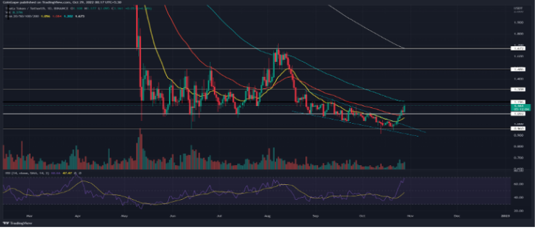 THETA, the 51st ranked cryptocurrency in terms of market capitalization according to online tracker Coingecko, is performing relatively well now as it stays on the green zone as far its short-term and long-term price monitoring is concerned. THETA is all green in the charts except for its year-to-date progress The altcoin is sitting on a 17.2% 14-day increase A test of the $1.2 resistance zone is likely to happen for THETA At press time, the asset is trading at $1.16 and is up by 1.5% over the last day. On a weekly and biweekly timeframe, the crypto increased by 16.8% and 17.2%, respectively. Moreover, the past 30 days also saw the altcoin go up by 5.9%. It is still enjoying some residual momentum from the rally that the crypto market did just few days ago but still has long ways to go if it hopes surpass or even to just get closer to its April 16, 2021 all-time high value of $15.72. Nonetheless, THETA is still one of the better performers of the crypto space right now but interested buyers must first consider knowing even just a little of its price analysis before making the decision to accumulate. Related Reading: Shiba Inu Facing Tough Hurdles For Weeks – How Could SHIB Overcome These? Diving Into THETA Price Action Over the last two months, the crypto market was filled with uncertainty and was also plagued by massive sell-off from different assets. THETA managed to buckle down despite all of these and in doing so had placed its price in a falling wedge pattern as it was bullish but was eventually headed to an immediate correction. Source: TradingView During the last five days, the altcoin’s charts were filled with green candles as it went up by 15% on the way to testing the $1.2 marker. Meanwhile, the asset’s Relative Strength Index (RSI) has entered the overbought zone, indicating the need to somehow put a stop to aggressive buying from traders in order to stabilize the price rally. Moreover, during the recent crypto market rally, THETA price increased rapidly and, owing to its current pattern, needs to undergo correction before resuming its recovery and eventual upward movement. Related Reading: Why Bitcoin (BTC) Could Not Surpass Litecoin (LTC) In This Key Area Price Forecast for the Crypto Asset As suggested earlier, the next few days will be painted in red for THETA as it is heading towards its impending price stabilization. According to Coincodex, over the next five days, the asset will slightly decline to trade at $1.15. The sharp correction will happen within the next 30 days as it is likely to plummet all the way down to $0.58. The token has 17 technical indicators that are giving off bearish signals and has settled in the Fear Region of the Fear and Greed Index. Investors and prospective buyers, however, must remember that if THETA stays true to the nature of its pattern, it will try to bounce back and make a rally of its own after its price dump. THETA market cap at $1.16 billion on the daily chart | Featured image from BlockchainReporter, Chart: TradingView.com Disclaimer: The analysis represents the author’s personal views and should not be construed as investment advice.