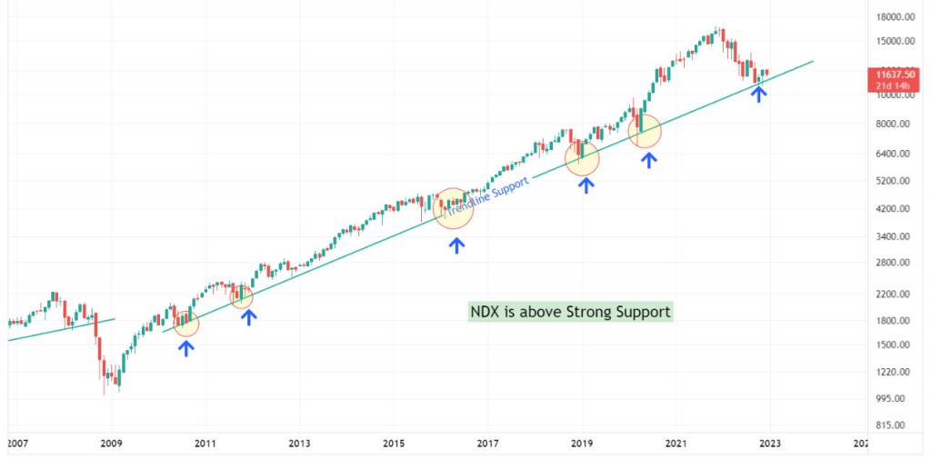A quant has explained why the recent retest of a critical support level by Nasdaq may help Bitcoin reverse its own trend. Nasdaq-100 Has Recently Retested A Critical Support Trendline As pointed out by an analyst in a CryptoQuant post, Nasdaq-100 is currently above a support line that has historically been important. Nasdaq-100 (NDX) is a stock market index that includes 102 equity securities issued by 101 of the largest non-financial companies (based on their market caps) listed on the Nasdaq stock exchange. Here is a chart that shows how this trendline has acted as a bounce in the index’s price over the past decade: The value of the asset seems to have touched this line recently | Source: CryptoQuant As you can see in the above graph, the price of NDX has been supported five times by this trendline since the year 2010. In each of these instances, the line has put a check on the decline in the index, and has consequently reversed it back up. Related Reading: Upcoming FOMC Meeting Is The Most Important Ever For Bitcoin – Watch Out For The Dot Plot Recently, the Nasdaq-100 index has once again made a touch of this trendline, and has so far managed to stay above it. The quant notes that this retest could have been the end of the latest downwards trend, and might have also been the point of return of a bullish trend. However, if the trendline is lost instead, it would show the extreme strength of the downtrend, and would suggest that there is more drawdown ahead for the market. Related Reading: Is Bitcoin Bottom In? This On-Chain Condition Hasn’t Been Met Yet At the same time, Bitcoin has also been testing a support line, as the analyst has highlighted in the chart: Looks like BTC is also just above a support trendline right now | Source: CryptoQuant In the past year or so, Bitcoin has shown to be highly correlated with the stock market. The reason behind this correlation has been the rise of institutional investors in the crypto who treat it like a risk asset. The quant believes that if the current support retest in the stock market proves to be successful, then BTC could also be expected to see a reversal of its own due to its correlation with the stocks. Bitcoin Price At the time of writing, Bitcoin’s price floats around $17.2k, up 1% in the last week. Over the past month, the crypto has lost 7% in value. Below is a chart that shows the trend in the price of the coin over the last five days. The value of the crypto seems to have observed a sharp surge to $17.2k over the past day | Source: BTCUSD on TradingView Featured image from Maxim Hopman on Unsplash.com, charts from TradingView.com, CryptoQuant.com