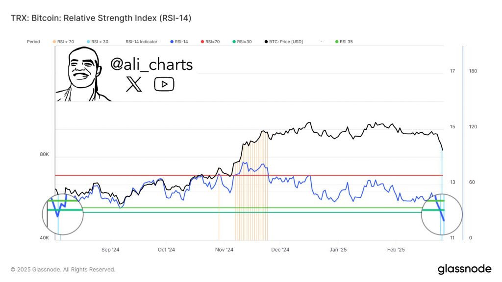 Bitcoin (BTC) has declined by more than 10% in the last two weeks, falling from approximately $98,000 to around $86,000 at the time of writing. The high selling pressure has pushed the flagship cryptocurrency to oversold levels it had not seen since August 2024. Bitcoin Is Oversold, Time To Buy? According to an X post by seasoned crypto analyst Ali Martinez, BTC has entered oversold conditions it hadn’t seen since August 2024. Specifically, the Relative Strength Index (RSI) for Bitcoin has dropped to the lowest level in the last seven months. Related Reading: Is Bitcoin Showing Early Signs Of Bullish Divergence? Analyst Explains For the uninitiated, the RSI measures Bitcoin’s momentum on a scale of 0-100, with values above 70 signaling overbought conditions and below 30 indicating oversold levels. According to the following chart, BTC’s RSI has tumbled below 30, indicating the digital asset may be significantly oversold. Notably, the last time BTC was this oversold – in August 2024 – it led to a 33% price surge, pushing the digital asset from $49,000 to $64,000 in two weeks. A similar trajectory today could propel BTC to around $110,000. Acclaimed crypto investor The Wolf Of All Streets had similar thoughts on Bitcoin’s RSI. The investor shared the following 4-hour chart, saying: Bullish divergence with oversold RSI still very much in play. At the moment, RSI still is making a higher low. We need to see a clear “elbow up” on the next candle to confirm. Nothing here yet. Meanwhile, crypto analyst Rekt Capital predicts that there may be further downside for BTC. The analyst emphasized that BTC is getting closer to filling the Chicago Mercantile Exchange (CME) gap between $78,000 to $80,700, which was created in November 2024. For the uninformed, a CME gap refers to the price difference between Bitcoin’s last traded price on the CME before the weekend and its price when the market reopens. Bitcoin is often believed to fill these gaps as part of a natural market correction, with the gap acting as a level of price support or resistance. Mixed Opinion On BTC Price Action The recent crypto market pullback has led to split opinions among analysts. For instance, a former Glassnode analyst recently said that the odds of being in a bear market are “not large.” Related Reading: Bitcoin 4-Year CAGR Drops To 14.45% But Still Outshines Gold, Stocks – Details Similarly, recent analysis by Andre Dragosch, European Head of Research at Bitwise, indicates that BTC may be undervalued at current market prices. On the contrary, Standard Chartered predicts that there may be another 10% drop in BTC price. Although the opinion on Bitcoin’s short-term price action may be divided, the long-term bullish case for the digital asset remains intact. At press time, BTC trades at $84,963, down 2.4% in the past 24 hours. Featured image from Unsplash, Charts from X and TradingView.com