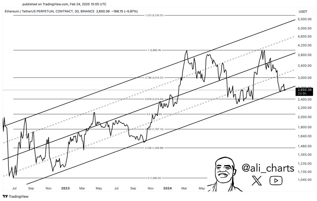 In an X post published today, crypto market analyst and commentator Ali Martinez highlighted a crucial Ethereum (ETH) price level that must hold to sustain hopes for an altseason. Martinez warned that losing this support could significantly derail any potential altcoin rally. Ethereum Must Defend Key Price Level Ethereum, the second-largest digital asset by market cap, continues to trade in the mid-$2,000 range. At the time of writing, ETH is priced just below $2,700, offering bulls a glimmer of optimism for a potential breakout above the $3,000 resistance level. Related Reading: Ethereum Short Positions Surge 500% In 3 Months – What’s Behind The Bearish Sentiment? However, in his latest analysis, Martinez emphasized the $2,600 level as a critical price point for ETH. He added that if the digital asset falls below this level, then “altseason will be canceled.” The recent Bybit crypto exchange hack sent shockwaves across the cryptocurrency industry as hackers stole digital assets worth more than $1.4 billion. Notably, ETH accounted for the bulk of the stolen funds. Despite this, ETH held up relatively well compared to Bitcoin (BTC), according to fellow crypto analyst Daan Crypto Trades. The analyst pointed out that ETH’s ability to remain at essentially the same price level after such a massive hack is “interesting.” They added: To see ETH at basically the same level as before a $1B+ hack is pretty interesting. Would not be surprised it there’s indeed some entity buying back some of that lost ETH or people frontrunning such a thing. At some point the ETH likely has to get back somehow, whether it’s recovered or bought back. Otherwise there would not be a 100% cover of funds. Crypto analyst Ted echoed this sentiment in his own analysis of the Bybit hack. In an X post, he highlighted that not only did the hack fail to push ETH to new lows, but the cryptocurrency has already rebounded 35% from its bottom. Meanwhile, crypto trader Merlijn The Trader provided some hope for ETH bulls, sharing a three-week Ethereum chart that suggests ETH is poised to break out of a symmetrical triangle pattern for its “biggest bull run yet.” Altseason In Jeopardy? Seasoned crypto analyst Rekt Capital also weighed in, sharing a daily altcoin market cap chart that shows altcoins failing to close above key resistance levels, highlighted in red circles. They explained: Altcoin Market Cap is transitioning into this triangular market structure (blue). Alts will need to daily close above the blue lower high and then above black resistance to confirm a major trend shift. Related Reading: Ethereum Positioned For A ‘Major Move Upward’ In 2025, Analyst Forecasts That said, there may still be hope for an impending altseason led by Ethereum. A recent report found that ETH reserves on crypto exchanges are at a nine-year low, which could exacerbate supply scarcity and drive up prices. At press time, ETH trades at $2,671, down 5.2% in the past 24 hours. Featured image from Unsplash, Charts from X and TradingView.com