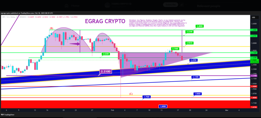 XRP has recently witnessed a notable decline, slipping by 5% over the past week. The altcoin dropped below key levels of $2.40 and $2.45, raising concerns among investors. However, a market analyst believes this price shift is not a sign of a crash but rather part of a bullish ascending triangle formation. Related Reading: Cardano Soars Nearly 130% To $30 Billion, Climbs To 9th In Market Cap Rankings Crypto analyst Egrag Crypto even stated that he will have to give “a slap” to anyone who mentions “crash” again. XRP Latest Price Movement XRP is presently trading at $2.56 following an intraday peak of $2.60 and a low of $2.45. The decline coincides with a period of rapid value gain for the token. According to Egrag Crypto, XRP is still in a structured pattern even with the pullback; if confirmed, this might lead to more increases. #XRP – Is Crashing Hard? 😂🚨 I’ll have to give a slap to anyone who mentions “crash” again! 😅 #XRP is simply filling in the ascending triangle formation. The first attempt? Let’s call it a fake-out! 🔄 Now, we’re just retesting the edge of the formation. 📈 Stay calm; this… pic.twitter.com/xqQwjoEgul — EGRAG CRYPTO (@egragcrypto) February 18, 2025 The Construction Of The Ascending Triangle Egrag Crypto claims XRP is forming an ascending triangle, a technical pattern usually signifying a likely breakout. This development is defined by a run of higher lows converging toward a horizontal resistance level. In the past, such circumstances imply an optimistic vibe if the price breaks past the resistance. “XRP is simply filling in the ascending triangle formation,” the analyst said. “The first attempt? Let’s call it a fake-out! Now, we’re just retesting the edge of the formation,” he added. Technical research highlighted this trend in December 2024, with Egrag forecasting ambitious price targets of $17 and $27. A similar examination conducted in October 2024 revealed resistance levels at $0.90 and $1.30, suggesting that overcoming these challenges will open the path for a potential price ascent. Levels Of Resistance And Market Sentiment The latest change in the price of XRP is in line with fluctuations in the market as a whole. Analysts point out important resistance levels that could determine the future path of the token, but some buyers are still wary because of the short-term volatility. Should XRP be able to break out of its current level, and momentum could push it toward bigger targets. External market variables, such as changes in the price of Bitcoin and general sentiment in the cryptocurrency market, will also be very important. Though traditionally optimistic, analysts emphasize that ascending triangles require confirmation through prolonged price action and increased volume. Related Reading: XRP Sees $4.3 Billion Open Interest Rebound Amid Bullish Price Action What Does XRP Have In Store? Market observers are keeping a careful eye on XRP as it trades close to $2.56 in anticipation of a breakthrough or additional consolidation. The altcoin may experience a new upward motion in sync with previous forecasts if resistance at higher levels is broken. Featured image from YouTube, chart from TradingView