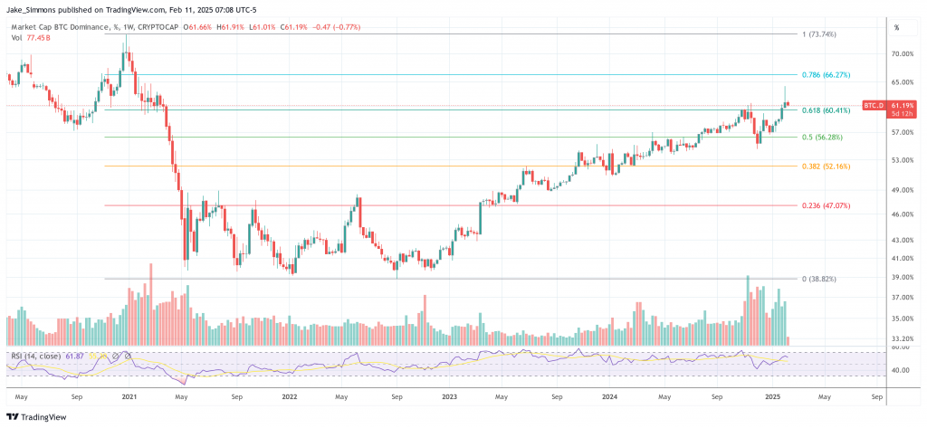 The Bitcoin dominance (BTC.D) surged above 64% this week, its highest level since March 2021, sparking debate over an impending short squeeze that could send its price skyward. The stark warning comes from Joe Consorti, Head of Growth at Theya, who took to X on Monday to outline what he views as a decisive turning point for Bitcoin versus the rest of the digital asset market. A Historic Break In Bitcoin’s Correlation Patterns In his post, Consorti contends that Bitcoin’s recent price action marks the first time in its 16-year history that both its price and market dominance have risen in tandem. Historically, Bitcoin’s dominance would rise initially, only to wane as speculation spilled into altcoins. However, Consorti states: “This is the first time in history that bitcoin’s share of the total digital asset market is rising while its price is climbing. In past cycles, retail-driven speculation pushed bitcoin’s price up and later funneled money into altcoins, causing bitcoin dominance to decline. That dynamic is gone.” According to Consorti, the days when a broad altcoin rally would follow Bitcoin’s initial surge appear to be over. Bitcoin dominance recently touched 64%—its highest level since February 2021. Consorti attributes the phenomenon to a significant change in market participation: “This cycle, institutions, sovereigns, and long-term holders are leading the charge, increasingly allocating capital exclusively to bitcoin while largely ignoring the rest of the market.” Related Reading: Bitcoin Funding Rate Turns Neutral On Top Exchanges: What Happened Last Time Last week’s market turbulence resulted in what Consorti calls “the single-largest liquidation event in ‘crypto’ history,” citing data that more than $2.16 billion in positions were wiped out within 24 hours. Ethereum led the liquidation figures with $573 million, and the largest single liquidation—a $25.6 million ETH/BTC order—occurred on Binance. “As you might have guessed, ETH/BTC is not having a great time,” Consorti notes, pointing out that the ETH/BTC pair is trading at 0.026—its lowest level in over three years. He argues these liquidations highlight the precarious nature of heavily leveraged altcoin markets: “All of it wiped out in an instant when price moved against them. This wasn’t your standard technical correction, it marks the start of an extinction-level event for altcoins.” The “Altcoin Casino” In Crisis Consorti’s analysis suggests that what he dubs “the altcoin casino” is now collapsing. He points to failed narratives around popular projects—Ethereum, Solana, and DeFi among them—that have struggled to maintain investor confidence: “Altcoins have survived purely on narratives. Each cycle, a new batch of narratives emerged, promising world-changing innovation. None of them lasted.” He contrasts this with Bitcoin’s core value proposition, which, in his view, requires no marketing: “Bitcoin, on the other hand, doesn’t need a narrative. It doesn’t need marketing or hype. It exists, and it thrives because it was built to do one thing—protect wealth in a world of perpetual monetary expansion.” Consorti also references Ethereum’s “merge” and its supposed deflationary design, pointing out that since the upgrade, ETH’s total supply has increased by 13,516 ETH—undermining the “ultra-sound money” claim. Related Reading: Bitcoin In 2025: History Could Repeat With A 2017-Style Surge Adding a policy dimension to the market’s transformation, Consorti highlights a statement from Senator John Boozman during the White House Crypto Working Group’s first press conference: “Some digital assets are commodities, some are securities.” This, he suggests, is a tacit acknowledgment that Bitcoin stands apart from other digital assets. In a further development, Consorti cites a comment from White House AI & Crypto Czar David Sacks, who mentioned the group is evaluating the viability of a Strategic Bitcoin Reserve—a shift from the previous “National Digital Asset Stockpile” terminology used under a Trump-era executive order. Consorti frames this as a “major development” that signals growing recognition of Bitcoin’s unique properties: “This language shift is monumental. A few years ago, the US government was openly hostile toward bitcoin. Today, they’re discussing stockpiling it.” Amid this upheaval, Consorti suggests that the next dramatic move in Bitcoin could be an explosive short squeeze. Funding rates on perpetual futures, he notes, have gone “deeply negative,” reminiscent of when Bitcoin traded near $23,000 in August 2023. This implies a tilt in leverage toward traders betting against Bitcoin—a position that could rapidly unwind: “While last week’s leverage flush wiped out most long positions, the next major move could be the opposite—an explosive rally fueled by forced short liquidations.” Should the market turn against these short-sellers, the forced buy-backs could drive the price higher with unusual speed and volume—especially if overall liquidity remains thin. He concluded, “Traders who overextended their leverage to short bitcoin will eventually have to buy it back when the price moves against them, just like overleveraged longs were wiped out last week. Bitcoin is coiled. The stage is being set for a potential short squeeze. The longer this dynamic of short dominance persists, the greater the risk of a forced shirt liquidation cascade that sends bitcoin’s price higher with force.” At press time, BTC.D stood at 61.19%. Featured image created with DALL.E, chart from TradingView.com