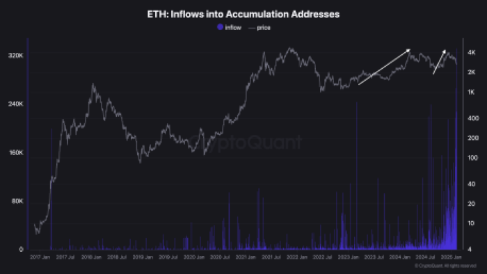 Word on the street is that Ethereum is ready for an early Christmas. The cryptocurrency’s accumulation addresses received a whopping $883M on February 7 – the highest daily inflow ever. Moreover, long-term holders are now holding over $19.24M worth of $ETH, which is also a record. This number, by the way, has jumped 20.55% in 2025, which, combined with the fact that $ETH’s price has dropped by 20.75% this year, reflects investors’ confidence in Ethereum. Simply put, an increasing number of investors are HODLing Ethereum, expecting a big move in the near future. Further evidence that $ETH’s record-breaking daily info is a bullish sign is the observation that Ethereum’s price shoots up after accumulation peaks like this. For instance, Ethereum’s price rose by 35% just two months after 244K ETH (a record at that time) were accumulated on a single day (on February 26, 2023). With Ethereum set to test (and potentially break) all-time highs, we’ve picked 6 meme coins to explode and follow $ETH on its upwards trajectory. 1. Solaxy ($SOLX) – Best Meme Coin to Buy In 2025 Solaxy ($SOLX) has arrived at just the right time for Solana. Although $SOL has been pretty sensational of late – 89% gains in the last one year – plus it’s now holding support and is ready for a breakout, it has admittedly been struggling to accommodate the growing number of users. This is where Solaxy comes in. As the first layer 2 solution on Solana, $SOLX will solve the problems of network congestion, failed transactions, and limited scalability on the blockchain. The $SOLX presale has been well received by both retail traders and whales alike. For instance, a whale bought $122K $SOLX just over a month ago. The total presale raise now stands at an impressive $19M, with each token currently being offered at just $0.00163. If this is your first time investing in a crypto presale, here’s a detailed guide on how to buy $SOLX. 2. MIND of Pepe ($MIND) – Leverage AI to Become a Profitable Crypto Trader MIND of Pepe ($MIND) is a one-of-a-kind fusion between AI and crypto that promises to alter how retail traders have been approaching the crypto market. It’s a self-evolving AI agent that constantly talks to crypto influencers and communities on dApps and social media sites like X, listening to their beliefs and biases regarding crypto. Next, $MIND organizes and then declutters all that information to offer trading signals and unique market insights to its token holders. Additionally, MIND of Pepe is also capable of shaping conversations and hype online, acting as a catalyst for new trending cryptos that it has recommended to its community. Simply put, this frog-inspired meme coin is poised for tremendous growth, as it’s a sigh of relief for retail crypto traders who have been struggling to make consistent profits. You can buy 1 $MIND for $0.0032924 if you get in right now. The $MIND madness has already raised over $5.5M, and it doesn’t look like slowing down. Here’s how to buy $MIND. 3. Meme Index ($MEMEX) – The Meme Coin Market Is No Longer Risky Meme Index ($MEMEX) is one of the best cryptos to buy now because it has the potential to not only change how people view the memecoin market but also attract more investors to this corner of crypto. Taking inspiration from how index funds function in stock markets, $MEMEX is the first provider of meme coin baskets. It offers four baskets of meme coins, ranging from the very safe Meme Titan Index (includes only the top cryptos in the world) to the high-risk, high-reward Meme Frenzy Index. There’s also the Moonshot Index and the Meme Midcap Index, which offer handsome returns in exchange for a decent risk appetite. All in all, because $MEMEX simplifies and diversifies meme coin investing, it has the potential to put crypto alongside the major financial markets in the world. Meme Index is currently in presale, where it has already raised $3.5M. Each token is now available at $0.0160352, but hurry up because the price increases in the next few hours. 4. Department Of Government Efficiency ($DOGE) – Benefit from the Musk-Led New US Govt Body We’re all well aware of the OG $DOGE, but with Donald Trump winning the elections and Elon Musk getting his own way, there’s a new DOGE in town – Department of Government Efficiency. Although the name of this US government department is indeed amusing, the work it does (or at least aspires to do) is very serious. Under the leadership of Musk, DOGE wants to reduce bloated federal spending, alleviating the tax burden on US citizens. DOGE’s X account constantly updates about the good work it has been doing. For instance, the organization has apparently saved over $5B in just the last two days by terminating wasteful contracts. As a result, this ETH-based token finds itself on the list of top gainers. It’s up by a mind-boggling 35% in the last 24 hours. Moreover, with a lifetime return of over 12,000% and truckloads of more fruitful work ahead, this $DOGE (currently priced at $0.065) is undoubtedly one of the top crypto buys under $1. 5. SPX6900 ($SPX) – Unique S&P 500 Index Meme Coin SPX6900 is another meme coin that has reacted positively to ETH’s accumulation news. It has jumped by over 8% today – and nearly 40,000% in the last year! Built on the Ethereum network, SPX6900 is an S&P 500-based meme coin that has an amusing goal of reaching 69T in valuation. Of course, there’s no point digging into the “why” of this fictional index’s mission. Thanks to SPX6900’s large community (82K followers on X and over 19K subscribers on its Telegram) and never-ending social media hype, it’s currently one of the best new cryptocurrencies. Currently trading at $0.67, the token also boasts a massive market cap of $624M, which is one of the biggest in the entire industry. Verdict Everything considered, it’s worth noting that even the best meme coins to explode aren’t free from the clutches of the overall