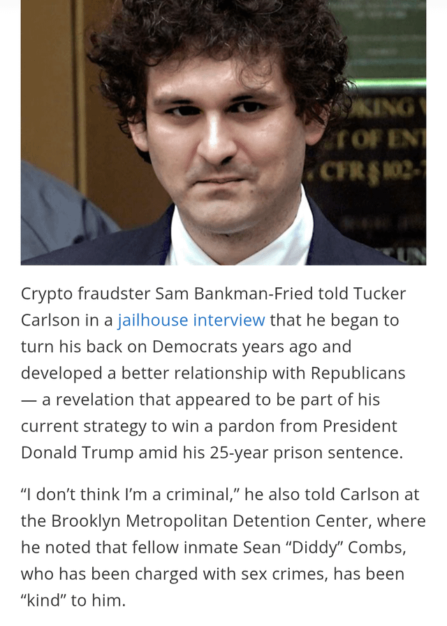 A representative for the US Bureau of Prisons reportedly said that Sam Bankman-Fried’s interview with Tucker Carlson was not approved by the agency.