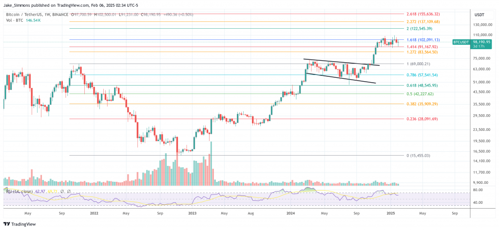 Amid the recent market shakeouts, Bitcoin (BTC) has shown strength, remaining near the crucial $100,000 barrier during its drops. While the flagship cryptocurrency is momentarily expected to continue its horizontal trajectory, some analysts forecast that BTC’s next leg up might start once it reclaims the recently lost key level. Related Reading: Memecoins Crowned As ‘Defining Narrative Of 2024’, What’s The Next Key Sector To Watch? Bitcoin Volatility Lower Than Q1 2024 The post-election pump saw the crypto market jump to new highs, with Bitcoin leading the climb. Two months ago, the flagship cryptocurrency crossed the $100,000 barrier for the first time, hitting $108,000 in mid-December. However, the market has seen several significant shakeouts since then, which has halted investors’ sentiment. Following its December peak, the flagship crypto recorded a 14% retrace, sending its price to the lower zone of its $90,000-$108,000 post-election range. In early January, BTC recorded a similar pullback after reclaiming the $100,000, falling nearly 13% before rebounding. Mid-month, Bitcoin retraced another 10% after hitting its latest all-time high (ATH) of $109,588 but held the $100,000 mark in the following days. However, the most recent correction saw BTC fall 14% from its Friday high of $106,000 and nearly 10% in 24 hours, triggering the largest single-day of crypto liquidations. Despite these retraces, Bitcoin has bounced from the local lows and continues to move within the mid-zone of its post-election range. Market observer Daan Crypto Trades noted that BTC’s volatility has been “relatively low” in the past few weeks, especially compared to the start of 2024. The cryptocurrency saw more violent swings when Bitcoin passed the $70,000 region in March, retracing up to 20% during these corrections. Since then, Volatility has “slowly dwindled” while Bitcoin’s price has been “creeping higher this cycle.” Bitfinex analysts previously noted the cycle’s “unique” conditions that drove the diminishing trend. According to the report, mainstream recognition, institutional adoption, and increasing confidence in the sector have kept BTC’s corrections smaller than past cycles, likely to continue for the rest of the bull run. Is A Takeoff Coming Soon? As BTC’s price continues to move sideways within its range, the flagship crypto looks “much stronger” than most of the market, “still looking perfectly fine when zooming out.” Daan added that “the demand for BTC is just so much higher compared to the rest of the market, especially during times of uncertainty.” However, crypto analyst Miles Deutscher highlighted that BTC’s search interest “is still sitting way below 2021 levels, despite sitting just under $100k.” This suggests that institutions are fueling the Bitcoin bull run while it is “no longer reliant on retail mania to pump BTC prices.” Related Reading: Solana (SOL) $200 Level Recovery Looks ‘Very Solid’, Is The Bleeding Over? Meanwhile, crypto analyst Jelle stated that Bitcoin is playing out similarly to Q1 2024, listing the “choppy” period, liquidity being taken out, and the Moving Average Convergence Divergence (MACD) retests as “flashing” signals again. This performance preceded the flagship crypto’s breakout to its March 2024 ATH and, if history repeats, could signal a price takeoff soon. Nonetheless, Jelle added that $100,000 remains the level to break and hold before any major price move. Featured Image from Unsplash.com, Chart from TradingView.com