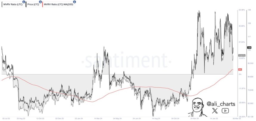Litecoin (LTC) has shown resilience amid market uncertainty and selling pressure, holding its ground despite the broader downtrend in cryptocurrencies. After retracing from $130 to the $100 mark, LTC has successfully held this crucial support, signaling that bulls are still active in defending key levels. Related Reading: BTC Could Gain Momentum For A Move To $150,000 If Bulls Reclaim This Level – Details While most altcoins have struggled, Litecoin appears to maintain a slight bullish edge. According to Santiment data, LTC continues to show strength in its on-chain metrics, with the Market Value to Realized Value (MVRV) Ratio signaling a bullish outlook. This suggests that investors are still holding onto their LTC, with less incentive to sell at current levels, potentially paving the way for a recovery in the near future. However, the coming days will be critical for Litecoin, as Bitcoin remains under pressure, struggling below key levels. Market uncertainty continues to drive volatility, and if BTC experiences further downside, LTC could face increased selling pressure. On the other hand, if Bitcoin stabilizes or pushes higher, Litecoin could quickly capitalize on its strong fundamentals and begin a renewed upward trend. Litecoin Bulls Defend Crucial Demand Litecoin is currently trading between key liquidity levels, navigating months of volatility and uncertainty in the broader market. Despite the recent market downturn, LTC has shown relative strength over the past few weeks, managing to hold crucial support levels while other altcoins continue to struggle. Related Reading: Dogecoin Indicator Flashes A Buy Signal On The 4-Day Chart – Is DOGE Gearing Up For A Rebound? However, price action remains uncertain, as Litecoin has been unable to break above key supply zones. Bulls have attempted to push the price higher, but selling pressure at resistance levels has kept LTC within a tight trading range. Until a clear breakout occurs, traders remain cautious about the next major move. Top analyst Ali Martinez shared insights on X, highlighting that Litecoin maintains a bullish outlook based on on-chain data. According to Santiment’s MVRV Ratio, LTC is showing strength, suggesting that investors are holding onto their positions despite the market’s recent volatility. This metric often indicates whether an asset is undervalued or overvalued, and in Litecoin’s case, it signals that the coin still has strong upside potential. If the broader crypto market starts to recover, Litecoin could emerge as one of the strongest assets, given its relative stability and bullish on-chain signals. For now, all eyes remain on LTC’s ability to hold key support levels and whether bulls can break past resistance to confirm a new uptrend. LTC Price Action: Technical Levels To Watch Litecoin is currently trading at $104 after facing days of selling pressure. However, despite the bearish sentiment, sellers have struggled to push LTC below the crucial $100 demand zone. This level has acted as strong support, preventing further downside, and every day that LTC holds above this mark increases the probability of a recovery move. For bulls to regain control, Litecoin needs to reclaim the $115 level soon. A decisive break above this resistance could trigger renewed buying momentum, paving the way for a push into higher price levels around $130-$145. These areas represent the next major liquidity zones, where LTC could face strong resistance but also attract significant bullish interest. Related Reading: 2.23 Million Chainlink Moved To Exchanges In Two Weeks – Selling Pressure Incoming? If Litecoin continues to hold above $100, it would indicate buying confidence at lower levels, setting the stage for a potential breakout. However, failure to reclaim $115 in the short term could keep LTC in a prolonged consolidation phase, leaving its next major move uncertain. Featured image from Dall-E, chart from TradingView