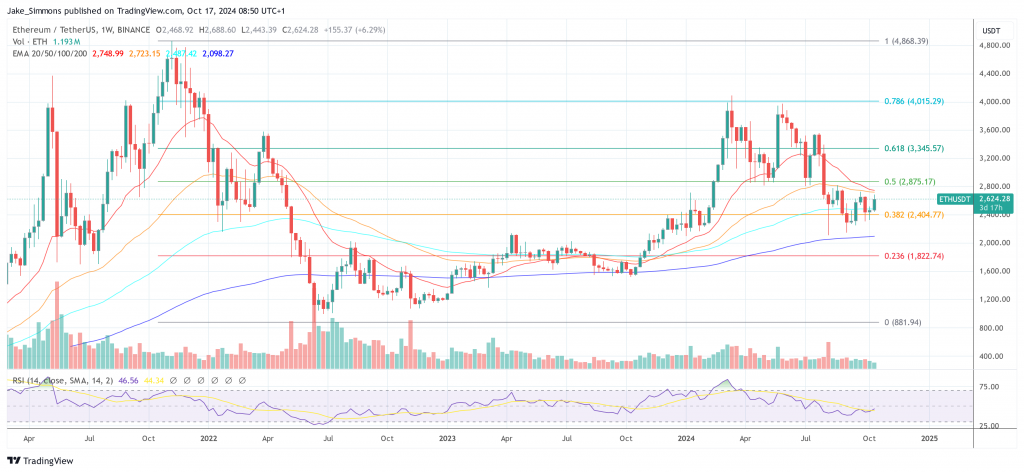In an interview with Aaron Arnold, founder of Altcoin Daily, Matt Hougan, the Chief Investment Officer (CIO) of Bitwise Asset Management, shared his optimistic outlook on Ethereum for 2025. Amidst a crypto landscape where Bitcoin and emerging high-performance blockchains like Solana, Sui, and Aptos dominate headlines, Hougan positions Ethereum as a “contrarian bet” that may offer significant returns for investors willing to look beyond current market sentiments. Why Ethereum Is The Best “Contrarian Bet” Hougan acknowledged Ethereum’s unique position within the crypto market. He describes Ethereum as “the asset that people love to hate; it’s kind of the middle child of crypto.” While Bitcoin maintains its status as the original cryptocurrency and a store of value, newer blockchains capture attention with promises of superior performance and innovative features. Ethereum, meanwhile, is often criticized for issues like high fees and the migration of activity to Layer-2’s, leading some to view it as outdated technology struggling to keep pace with its competitors. Related Reading: How The Israel-Iran War Could Shake Crypto Prices, Explains Arthur Hayes However, Hougan challenges this narrative by emphasizing Ethereum’s foundational role in some of the most critical and rapidly growing areas of the crypto industry. “When you step back and look at it, what are the killer apps of crypto outside of Bitcoin? They are things like stablecoins, DeFi [decentralized finance], and tokenization,” he notes. Despite the emergence of alternative platforms, Ethereum remains the leading blockchain supporting these applications. It is the primary choice for developers and institutions. “If you’re a large traditional financial player looking to build on a public blockchain what blockchain are you going to choose most likely? You’re going to choose Ethereum,” Hougan claims. The Bitwise CIO attributes Ethereum’s underperformance to a transitional phase in its development. “I think Ethereum has sort of passed over this year because it’s going through this complex teenage adjustment in its architecture,” he explained. This “teenage adjustment” refers to Ethereum’s ongoing upgrades. Hougan remains bullish on Ethereum’s long-term prospects, considering it a strong contrarian play for 2025. “Ethereum is the best contrarian bet in crypto right now,” he stated via X. Hougan believes that the market’s current focus on Bitcoin and newer blockchains has caused many to overlook Ethereum’s enduring strengths and potential for growth. He asserts that as the blockchain completes its architectural upgrades, it will be better positioned to capitalize on its dominant role in key sectors like stablecoins and DeFi. When asked whether he believes Ethereum will break it’s all-time highs, Hougan expressed cautious optimism. “I certainly think we could see that in 2025 if we see significant growth in the application space,” he responded. However, he emphasized that Ethereum’s ability to reach new price levels is more conditional compared to Bitcoin. “I think it’s maybe more conditional than Bitcoin,” he admitted. Related Reading: Crypto Prices Go Up: A ‘Cautious Bullish’ Outlook Amid Fed Worries And Market Volatility Key among these conditions is the enactment of favorable stablecoin legislation. “We need to see positive stablecoin legislation that helps that move aggressively into the mainstream,” Hougan stresses. Regulatory clarity and support for stablecoins could lead to increased adoption and integration into the mainstream financial system, directly benefiting Ethereum as the primary platform for these digital assets. Additionally, he points to the necessity for continued growth in decentralized applications (dApps) built on the Ethereum network. “We need to see more growth in apps that are built on the Ethereum ecosystem,” he added. Hougan advises investors to focus on the overall growth and development of the Ethereum ecosystem rather than short-term concerns like fee structures or the migration to Layer 2 solutions. “I don’t think that’s the game to play with Ethereum right now,” he remarks regarding worries about fees and network congestion. Instead, he suggests that the intrinsic value of Ethereum will become apparent as its ecosystem expands and matures. “Think about the growth of the ecosystem, and the value will sort itself out,” he asserts. Hougan stated that while he remains bullish on both Bitcoin and Ethereum, he sees a unique opportunity with Ethereum due to its current undervaluation and the market’s overlooking of its potential. “I know I just made a very bullish case for Bitcoin; now I’m making a very bullish case for Ethereum. I am bullish for both, and I think the setup for both is pretty good,” he concludes. At press time, ETH traded at $2,624. Featured image from YouTube, chart from TradingView.com