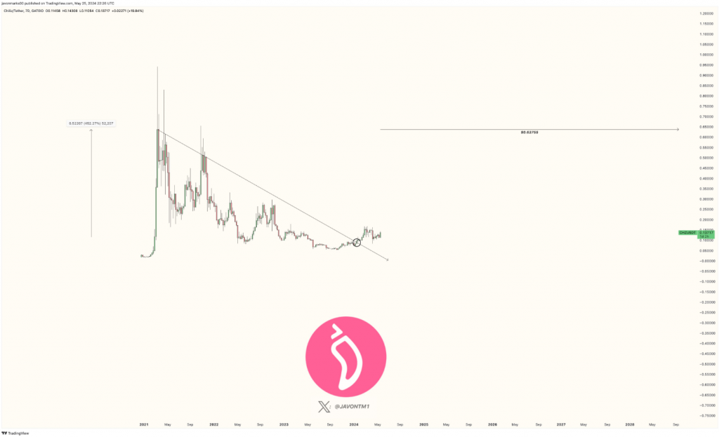 Chiliz (CHZ), the cryptocurrency powering fan engagement tokens for sports and entertainment, is stirring excitement with a potential breakout predicted by popular analyst Javon Marks. Marks forecasts a staggering 351% surge for CHZ, sending its price soaring to a projected $0.63. Related Reading: Avalanche Weathers The Storm – Can AVAX Hit $40 Again? This bullish prediction comes amidst a recent upswing for CHZ, marked by a decisive break above a key resistance level. Marks interprets this technical indicator as a sign of a sustained uptrend, potentially setting the stage for a significant price run. $CHZ (Chiliz) price has returned here with major strength and continues to hold free and broken out of a key resisting trend which can imply a much larger run to be developing! With this breakout holding, a near +351% run from here to $0.63755 could be a matter of time and still… https://t.co/w25MaWhxm5 pic.twitter.com/zSE2kPnfd0 — JAVON⚡️MARKS (@JavonTM1) May 25, 2024 Fan Power On The Blockchain: A Unique Selling Proposition CHZ’s unique value proposition lies in its innovative approach to fan engagement. By leveraging blockchain technology, CHZ empowers fans to forge deeper connections with their favorite teams and personalities through fan tokens. These tokens grant fans exclusive voting rights on certain club decisions, access to unique content and merchandise, and a chance to participate in the ever-evolving world of digital collectibles. This approach has resonated with sports fans globally, propelling CHZ to the forefront of the crypto market. The potential for increased fan engagement through CHZ tokens has attracted a loyal following, further bolstering the token’s potential. Marks’ optimistic outlook has ignited a wave of investor confidence in CHZ. The prospect of a 351% surge has captivated both seasoned crypto veterans and newcomers seeking a lucrative entry point into the market. Maintaining The Momentum However, Marks emphasizes the importance of maintaining the current breakout level for CHZ. He believes that staying above this resistance level is paramount to sustaining the bullish trend and maximizing potential gains. Related Reading: Shiba Inu On The Verge Of 600% Rally? Analyst Weighs In Chiliz: 35% Yearly Climb Signals Strong Growth Outlook The asset’s price has experienced a 35% increase over the past year, indicating strong performance and upward momentum. This positive trend is further supported by its current trading position above the 200-day simple moving average, a key technical indicator suggesting sustained bullish sentiment and potential for continued growth. Additionally, the asset’s high liquidity, as evidenced by its substantial market capitalization, ensures that it can be traded efficiently without significant price volatility. This combination of recent price appreciation, favorable technical indicators, and robust liquidity positions the asset as a potentially attractive investment opportunity. Featured image from National Agricultural Advisory Services, chart from TradingView