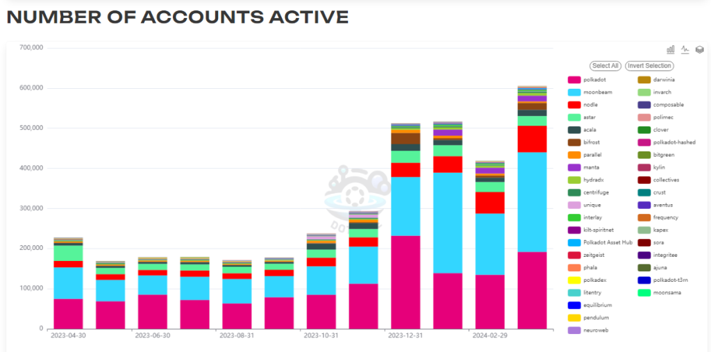 Polkadot, a blockchain platform designed for interoperability between different blockchains, is experiencing a surge in new users, but a disconnect between user growth and network activity is raising questions about its long-term viability. Related Reading: Don’t Miss The Boat! Ethereum Whales Signal Bullish Run With $40 Million Bet Based on the latest figures, DOT tallied an all-time high in active wallets and unique accounts in March, surpassing 600,000 and 5.59 million, respectively. This suggests a growing interest in the platform, potentially driven by the thriving developer ecosystem on Polkadot’s parachains, specialized blockchains that connect to the main Polkadot chain. Moonbeam, a prominent parachain, played a particularly significant role, contributing the highest number of active addresses with nearly 250,000. Source: Data Polkadot Transactions Dip Despite Active User Growth However, despite the influx of new users, the number of transactions on the Polkadot network hasn’t kept pace. While there was a modest increase in transactions compared to February, the current volume remains significantly lower than the peak recorded in December. This inconsistency raises concerns about how actively users are engaging with the network. The possibility exists that users are holding or staking their DOT tokens instead of utilizing them for transactions on the platform. Total crypto market cap is currently at $2.5 trillion. Chart: TradingView Polkadot Price Seeks Stability After Recent Decline The price of Polkadot’s native token, DOT, seems to be finding support around $9. This could indicate a period of consolidation after a decline from its previous highs above $11. While a price increase is typically seen as a positive sign, it’s important to consider it alongside actual network usage. Source: Data Is Polkadot Building Without Using? The current situation with Polkadot presents a paradox. The platform is attracting new users, but they aren’t necessarily translating into active network participants. This could be due to several factors. Perhaps users are waiting for a specific application or service to be built on Polkadot before actively engaging. It’s also possible that technical limitations are hindering user activity. Related Reading: SUI Slips After Hitting All-Time High: TVL Tumbles 12% – Token Price In The Gutter? Further analysis is needed to understand the reasons behind the lagging transactions. Examining the types of transactions occurring on the network could provide valuable insights. For instance, an increase in governance-related transactions might suggest a more engaged user base, even if overall transaction volume remains low. Polkadot’s Future Hinges On Active Network Use While the growth in active wallets and accounts is a positive sign for Polkadot, it’s crucial to convert this interest into actual network usage. The success of Moonbeam demonstrates the potential for a vibrant developer ecosystem on Polkadot. However, broader adoption across various use cases is necessary for the platform to reach its full potential. Featured image from Pexels, chart from TradingView
