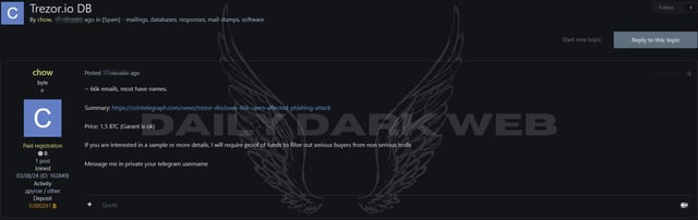Don't know if the person actually has it, but wouldn't still be a major security risk to anyone holding trezor wallets, except they should be extra careful with any emails. submitted by /u/madali0 [link] [comments]