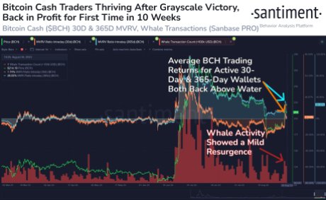 As the price of Bitcoin and the general crypto market has rallied, leading to a much-needed increase in price, Bitcoin Cash (BCH) investors are once again on a profitable path. The majority of investors are now in the green following its double-digit surge in the last week. But now the question posed is, will the price of BCH continue to maintain this surge? Bitcoin Cash Short And Long-Term Holders Enjoy Profits In a Thursday post, on-chain data tracking platform Santiment revealed that both short and long-term holders of Bitcoin Cash are doing quite well right now. The chart shared by the tracker showed that the average returns for 30-day and 365-day holders have risen above their average cost price. Related Reading: Grayscale Victory Sends Bitcoin Open Interest Surging After Hitting One-Year Lows This means that investors who got into the digital asset in the last month, as well as those who have been holding for a year, are the ones doing well right now. It is also the first time in 10 weeks that this cohort of BCH investors is seeing profit. Short and long term BCH traders move into profit | Source: Santiment on X The data from Santiment is also backed up by that from another on-chain tracker IntoTheBlock. According to the latter’s data on its website, 59% of all BCH investors are seeing green compared to 38% sitting in the red and 3% in neutral territory. Furthermore, IntoTheBlock shows that 96% of holders have held for more than one year, with 3% holding between 1-12 months, and 1% holding for less than one month. Combining the data from both trackers tells us that there are more long-term investors in profit compared to short-term investors. This fact reinforces the long-standing belief that buying and holding is usually the best way to invest in cryptocurrencies. But Can BCH Hold Its Gains? The fact that so many short and long-term holders are currently in profit can be attributed to the digital asset’s spike in the last week. Following the Grayscale ruling that saw the market surge, BCH’s price rose over 14%, bringing its value to the $220 level before the retracement. Most of these gains have been sustained so far, as evidenced by the high percentage of holders in profit. Related Reading: Is Vitalik Buterin Selling His ETH Stash? Let’s Take A Look At His Transactions However, Santiment points out in its report that for Bitcoin Cash to continue to rise, it would be up to the whales. This is because, during the price spike, there was an increase in whale activity in relation to the BCH token. So they likely played a part in the asset’s rise. If the whales continue to be active and put buying pressure on the coin, then the price of BCH could continue to appreciate. However, a turn from buy to sell among these large holders would quickly crash the price, especially since the market is already feeling the euphoria felt earlier this week start to recede. Presently, data from Coinmarketcap shows that Bitcoin Cash is trading at $219, a 14.57% increase in the last week. BCH price reclaims $220 | Source: BCHUSD on Tradingview.com Follow Best Owie on Twitter for market insights, updates, and the occasional funny tweet… Featured image from WallPaper, chart from TradingView.com